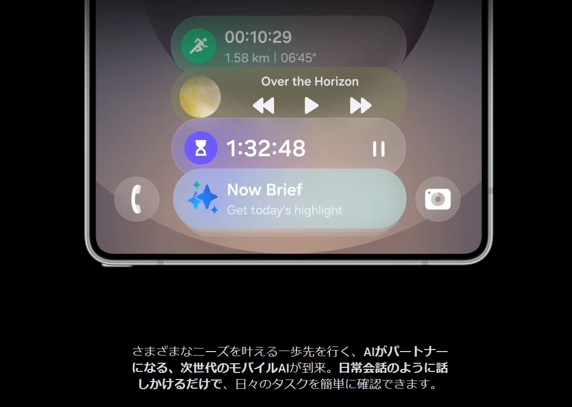 最新の「Galaxy AI」を搭載しており、サイドボタンを長押ししてGoogle Geminiに話しかけるだけで、様々な作業を簡単に完了できるようになっています。