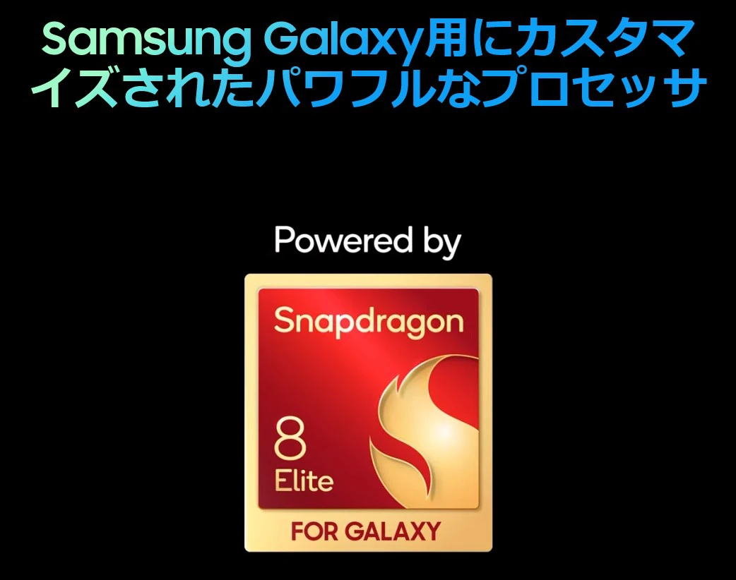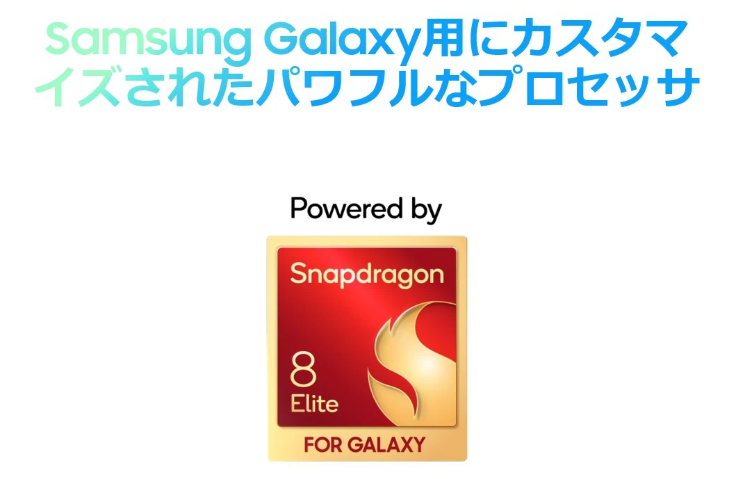 CPU(SoC)にはGalaxy S25と同じく「Snapdragon® 8 Elite」を採用。12GB RAMを搭載し、一般的なスマホ用途はもちろん、ヘビーなゲーミング利用にも対応できる性能を備えています。