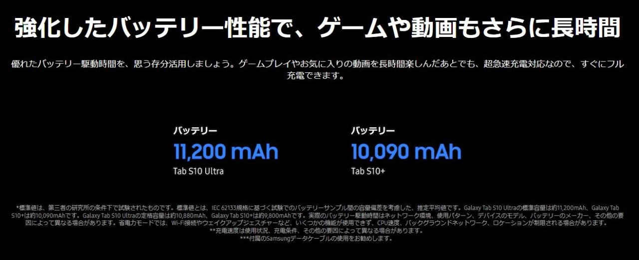 | バッテリー容量 | 11,200mAh | 10,090mAh |