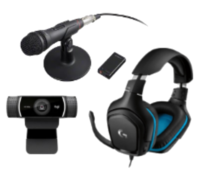ヘッドホン、マイク、カメラの配信者3点セットです。