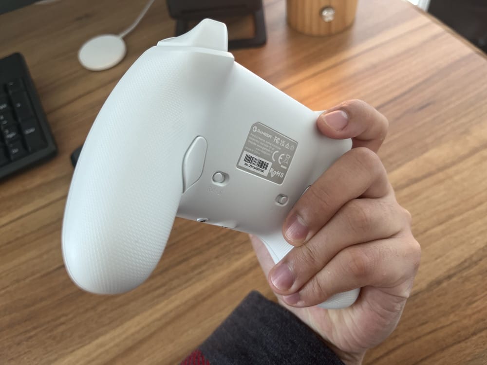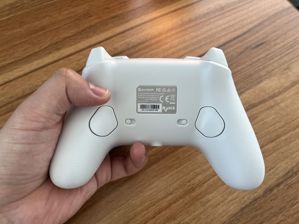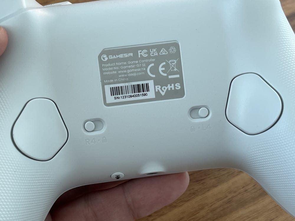 ▼『GameSir G7』は背面にバックボタンのロックスイッチが搭載されていない。