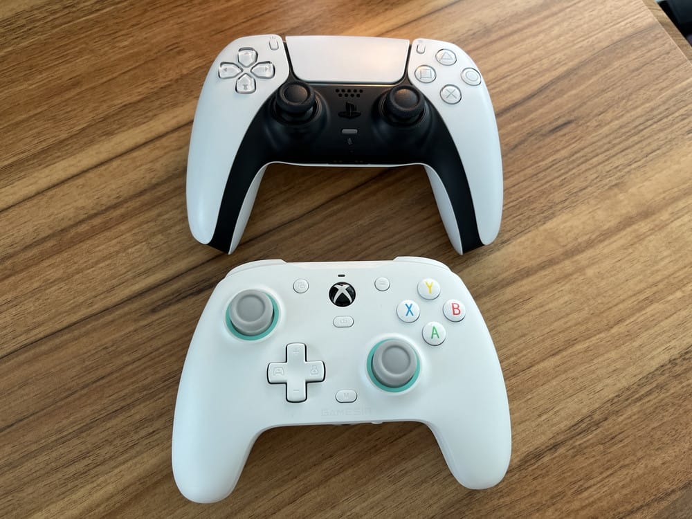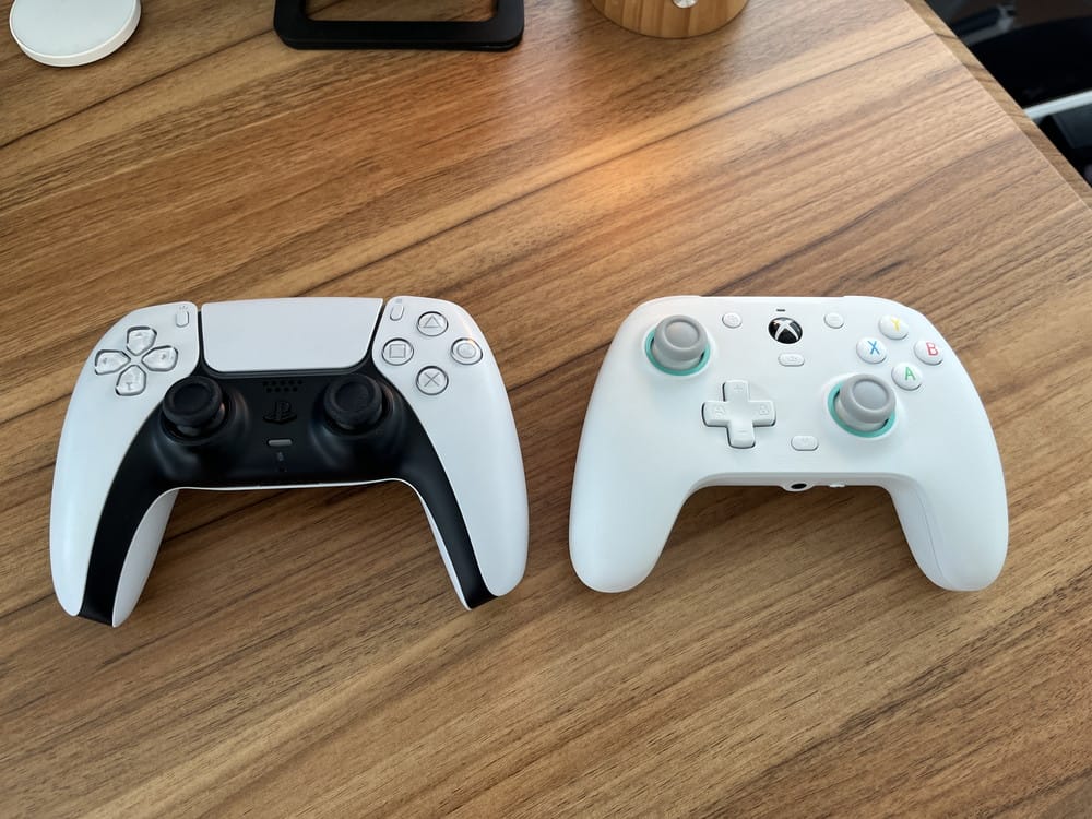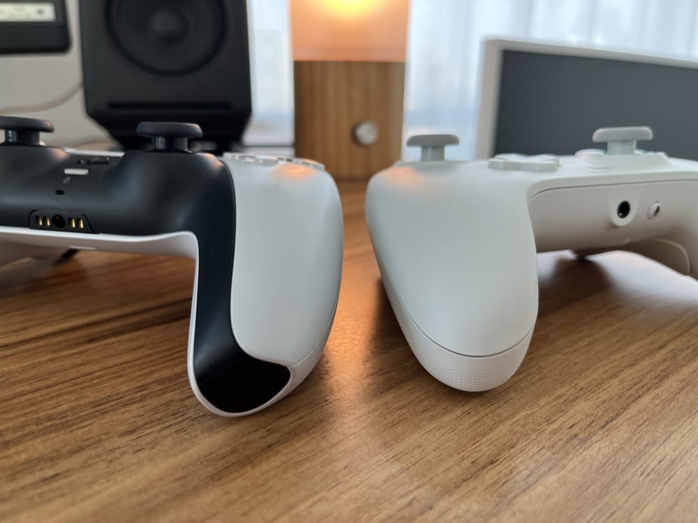 ▼PS5のデュアルセンスコントローラー(画像左・上)と並べた様子。