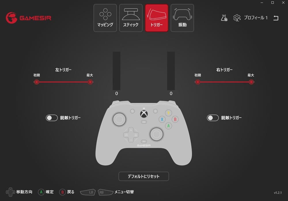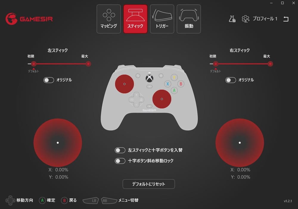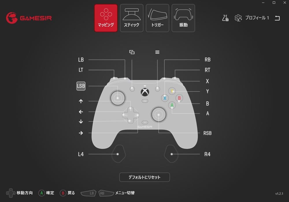 本製品は専用の無料ソフトウェア『GameSir Nexus』を用いて、各種パラメータや機能を自由にカスタマイズすることが出来る。