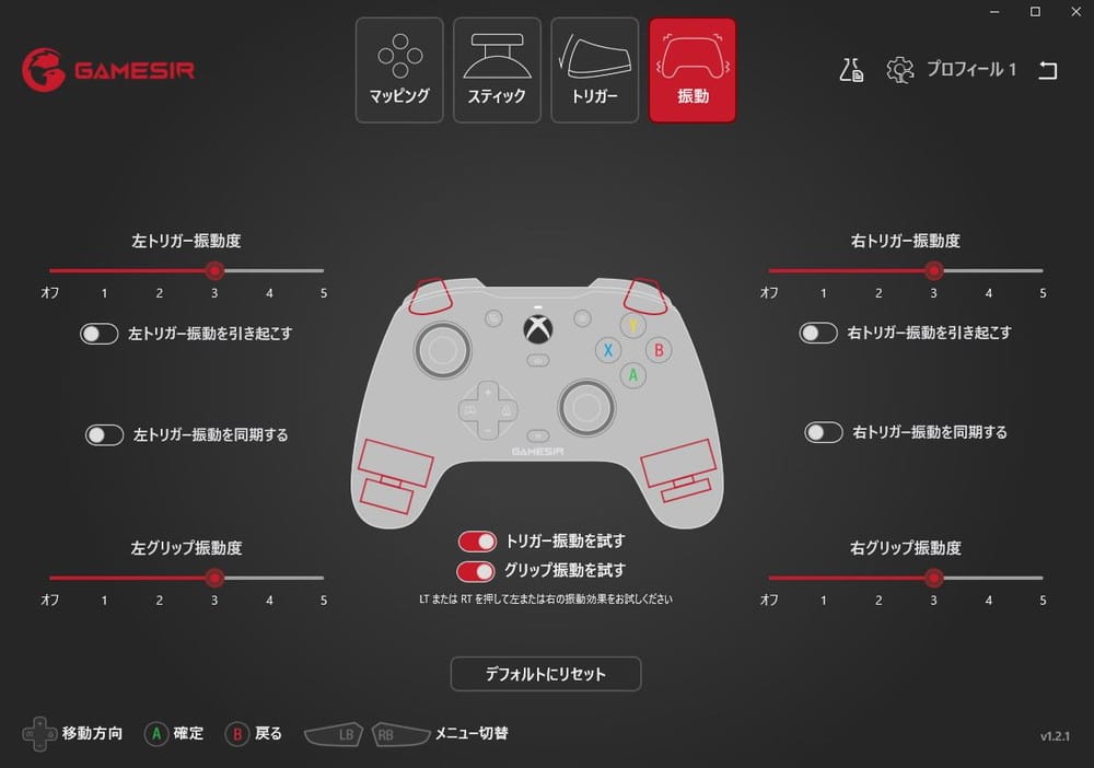 ▼設定プロファイルを3つまで保存可能。保存したプロファイルは、コントローラーのMボタン + A/B/Xボタンで呼び出せる。