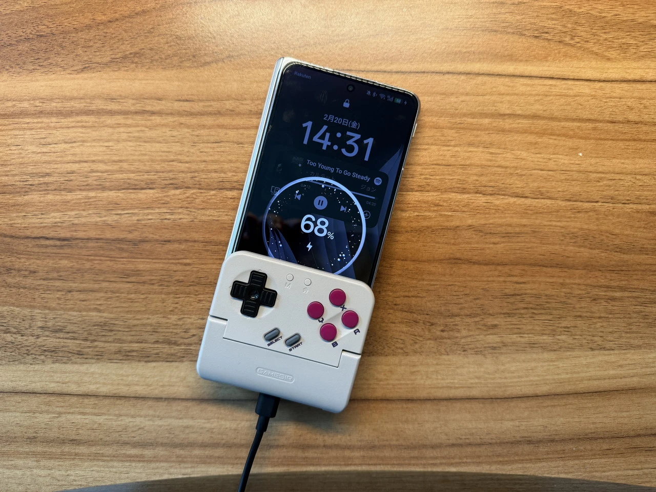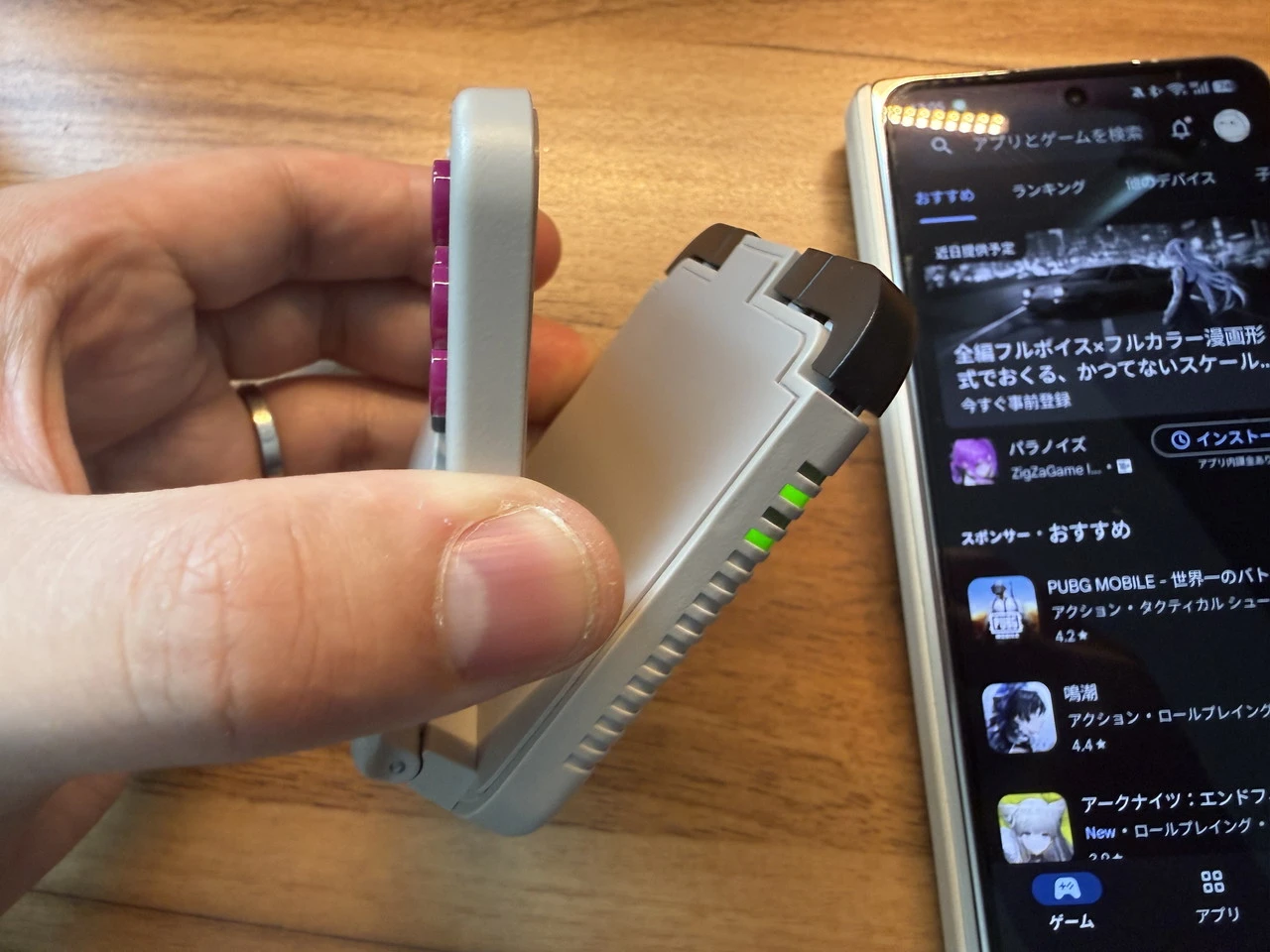 Bluetooth接続が完了したら、スマホをコントローラに挟み込みます。