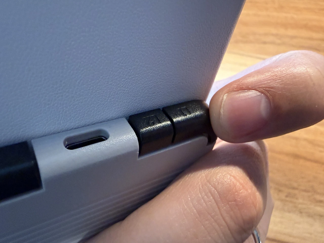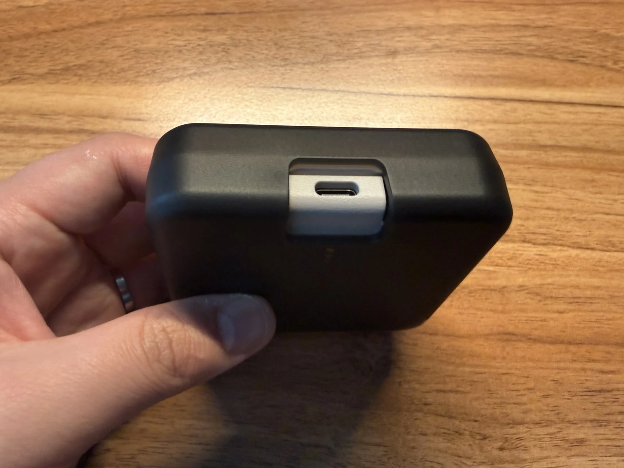本体下部の、スマホのUSBポートに対応する位置には開口部が設けられており、Pocket Tacoを装着したままスマホも充電できます。