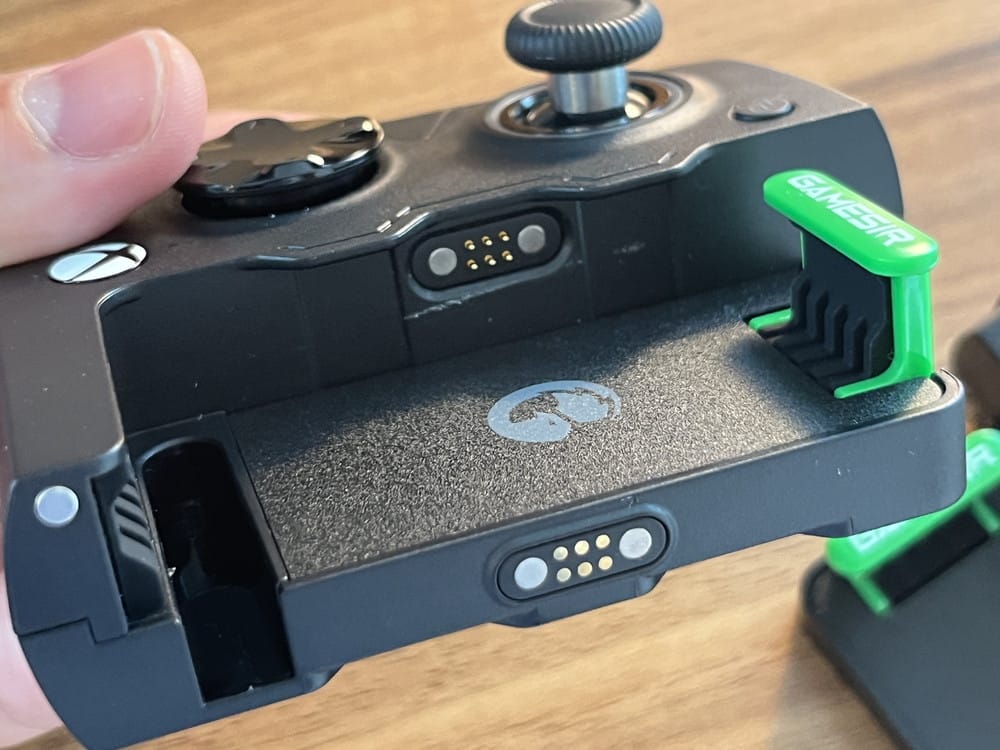 ▼背面が空くため、スマホ冷却用のクーラー(別売り)やワイヤレス充電器(別売り)を装着した状態でも、コントローラーを利用することが可能。