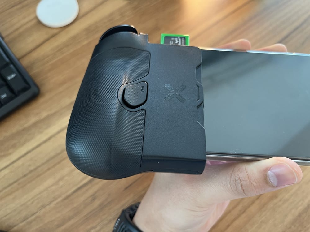 ▼コントローラー自体がコンパクトなサイズのため、スマホに装着しても邪魔に感じない。