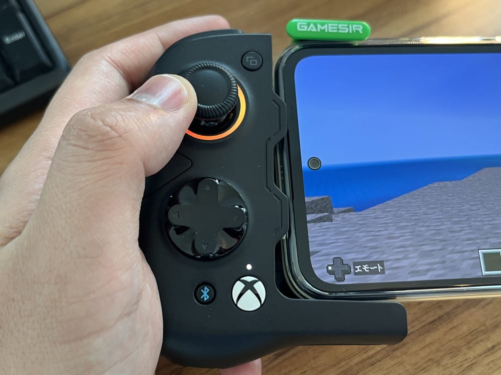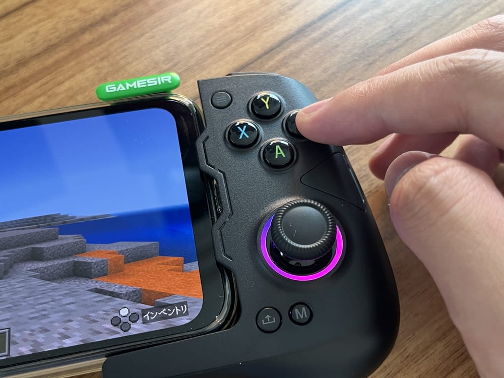 ▼コントローラー対応ゲームアプリ『マインクラフト』をプレイしている様子。