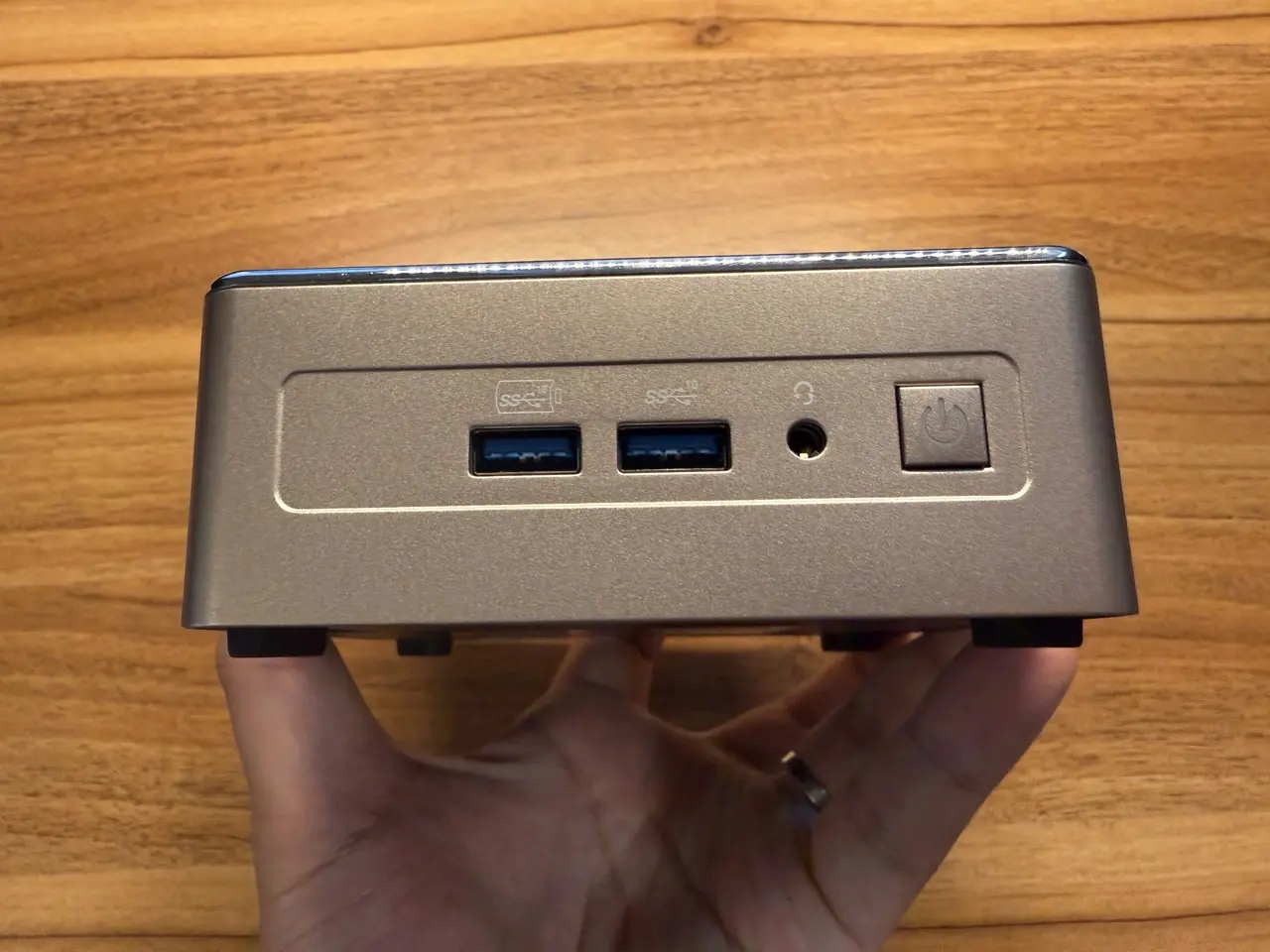 ▼本体正面。画像左側からUSB Type-A 3.2 Gen 2ポート×2、3.5mmオーディオジャック、電源ボタンが搭載。