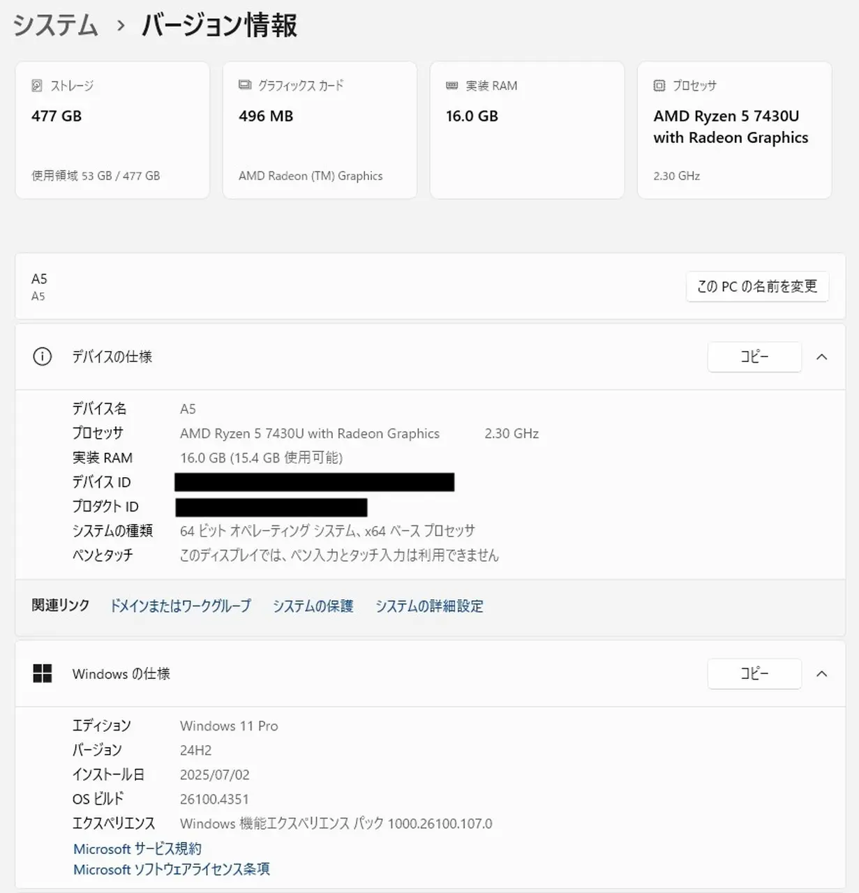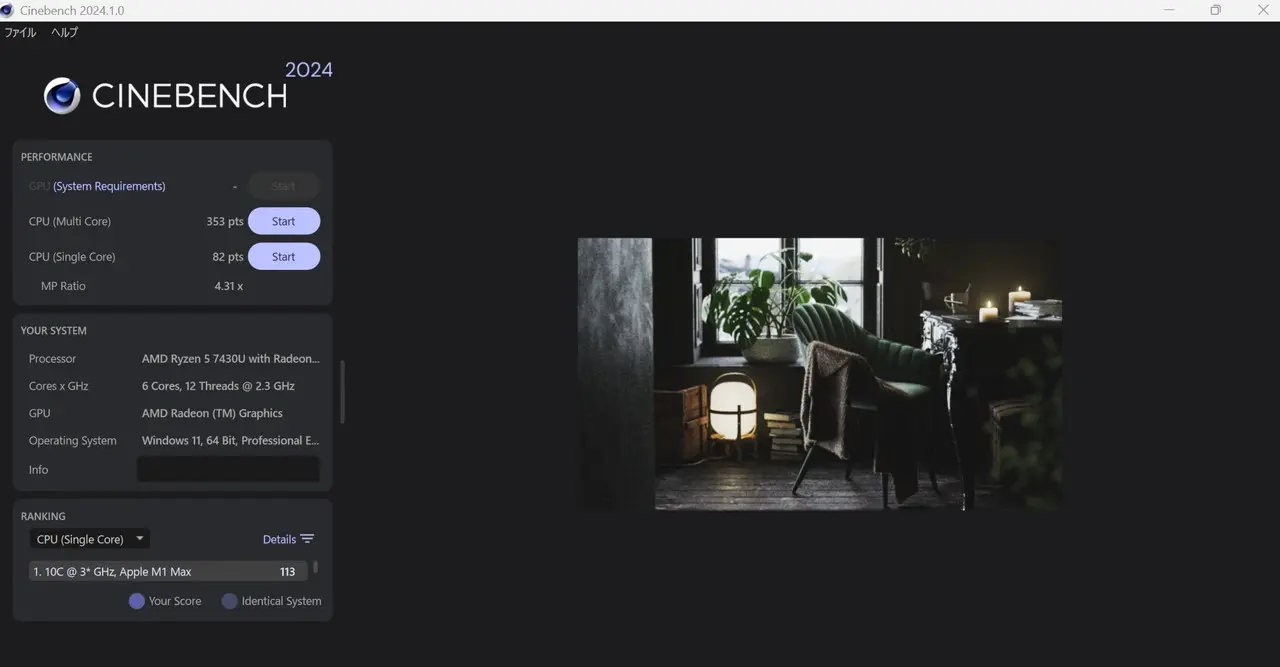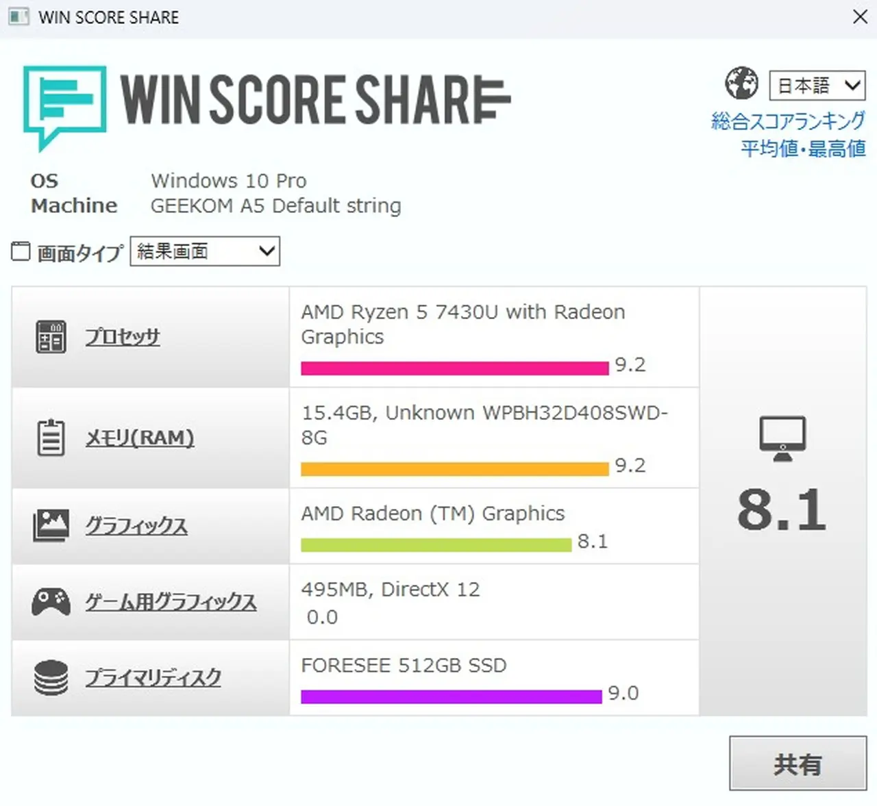 - Ryzen 5 7430U + Vega 7搭載で、価格以上の性能を発揮