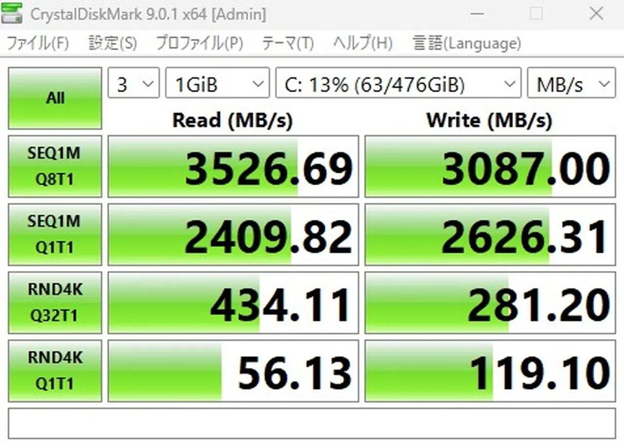 ゲーミングや日常使用において、快適なストレージ体験が可能なスコアだ。アクセス時間も全体的に100μs前後と優秀。高負荷な書き込み連続処理(ゲーム録画など)では限界が見えるが、ゲーム起動や移動・保存といった動作は快適に行うことができるだろう。