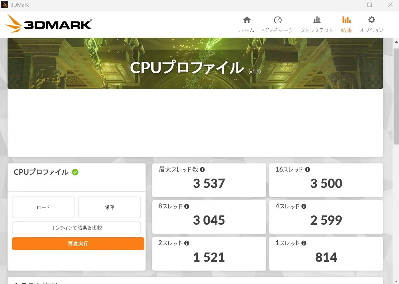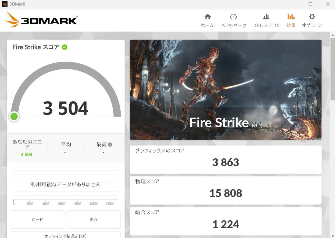 上記の条件でベンチマークテストを行った結果、スコア3,911点、評価は "設定変更を推奨" であった。