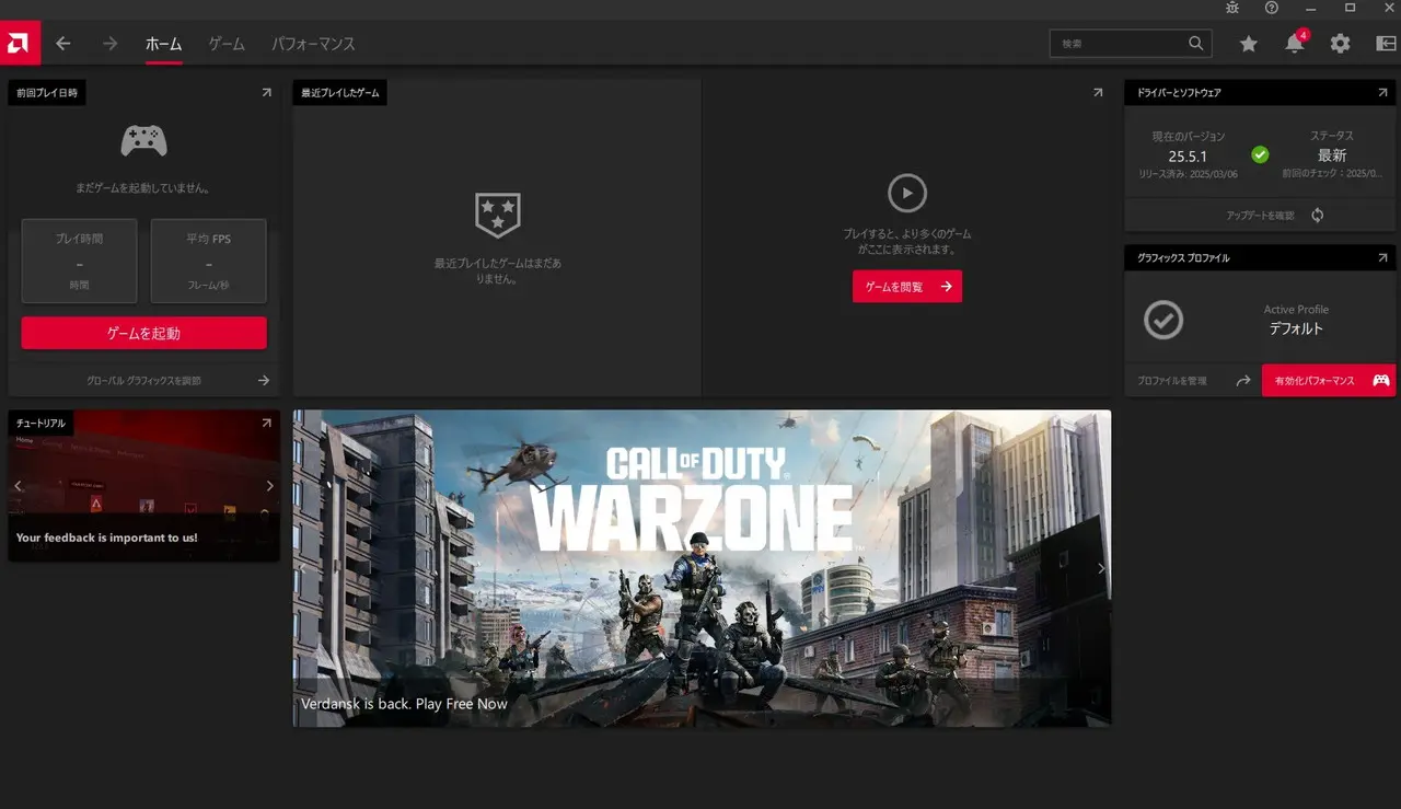 なお、初起動時点でAMD Radeon Graphicsはインストールされていないため、必要に応じて公式サイトよりインストーラをダウンロードしておこう。