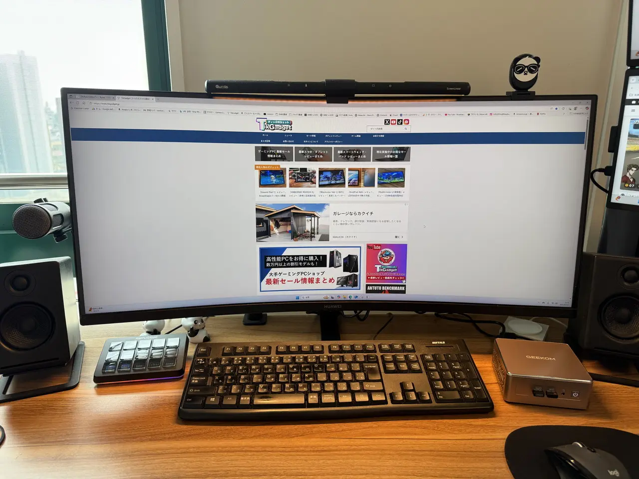 今回のレビュー時には3440×1440解像度のウルトラワイドモニターに接続して利用した。