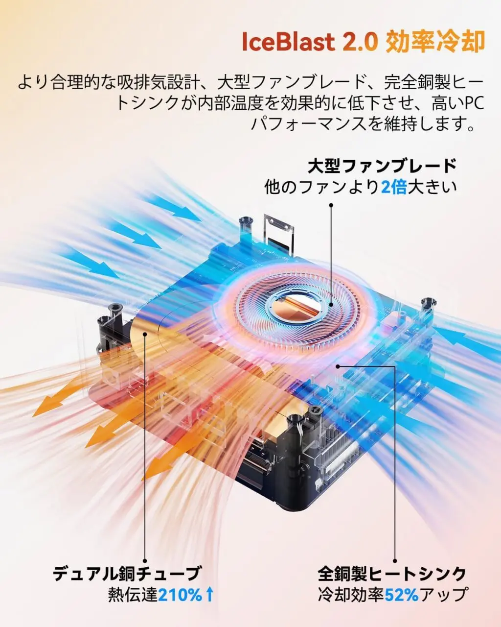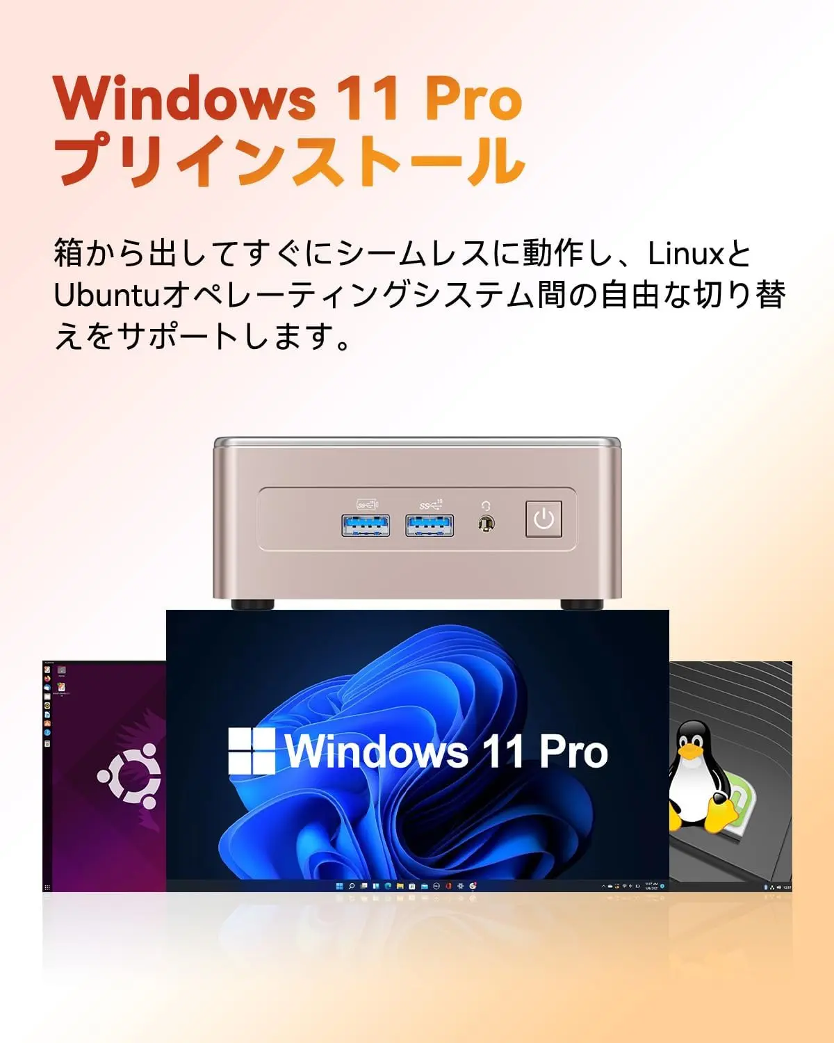 この価格帯のミニPCの中でも基礎性能が優れており、Web閲覧やオフィス作業、動画視聴といった日常用途はもちろん、軽めのゲームやクリエイティブ作業にも対応できるバランスの取れた構成となっている。在宅ワークや学習環境、リビングPCとしても最適だ。