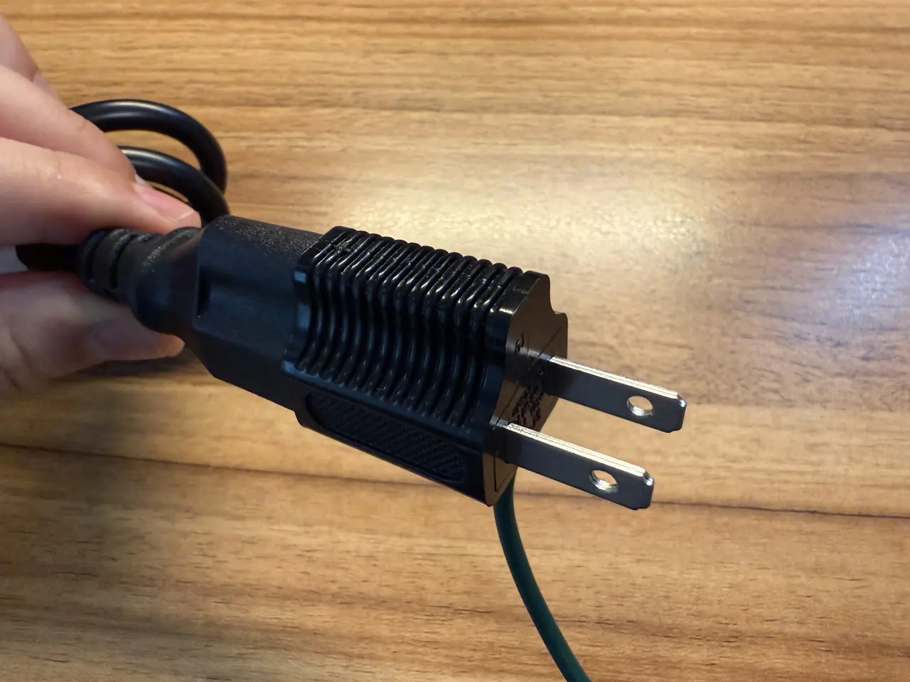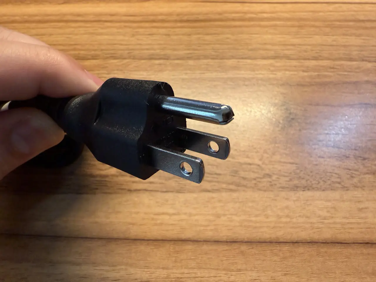▼付属する電源ケーブルは3P形状なので、一般的な住宅コンセントで使用する場合は3P⇒2P変換アダプタが必要になる場合があるので注意したい。