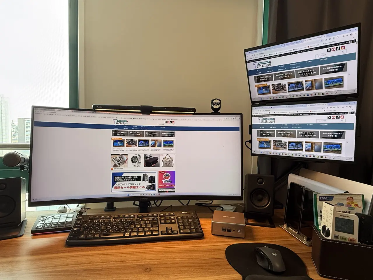 ▼3440×1440@100Hz×1、1920×1080@60Hz×2の計3ディスプレイに同時出力した際にも快適に作業可能。