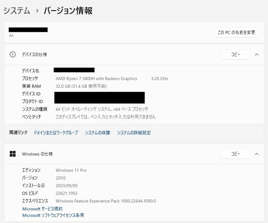 CPUには「AMD Ryzen™ 7 5800H」を搭載しており、RAMは32GB DDR4-3200を採用。大抵の作業を快適にこなせるだけのスペック構成となっている。