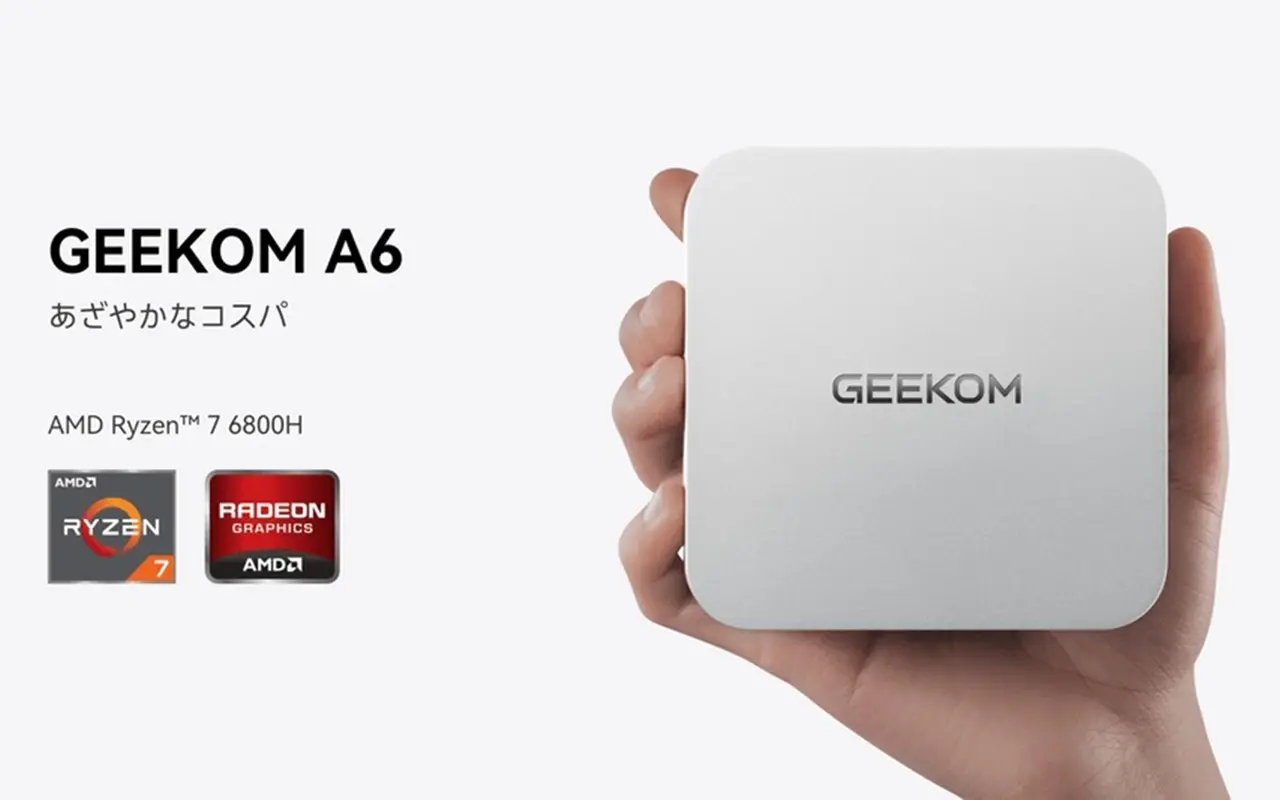 数多くのPC関連商品を手掛けるメーカー「GEEKOM(ギコム)」(台湾)は、AMD Ryzen™ 7 6800Hを搭載した、2025年最新の高性能ミニPC『GEEKOM A6』を発売しています。