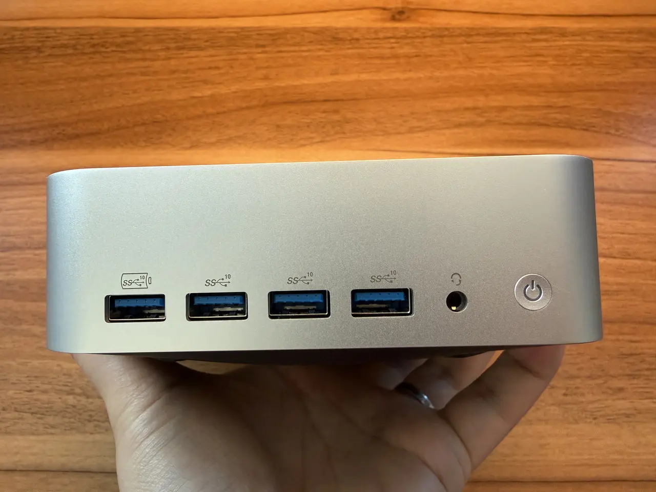正面には電源ボタン、3.5mmヘッドフォンジャック、USB 3.2 Type-A Gen2 ×4が用意。