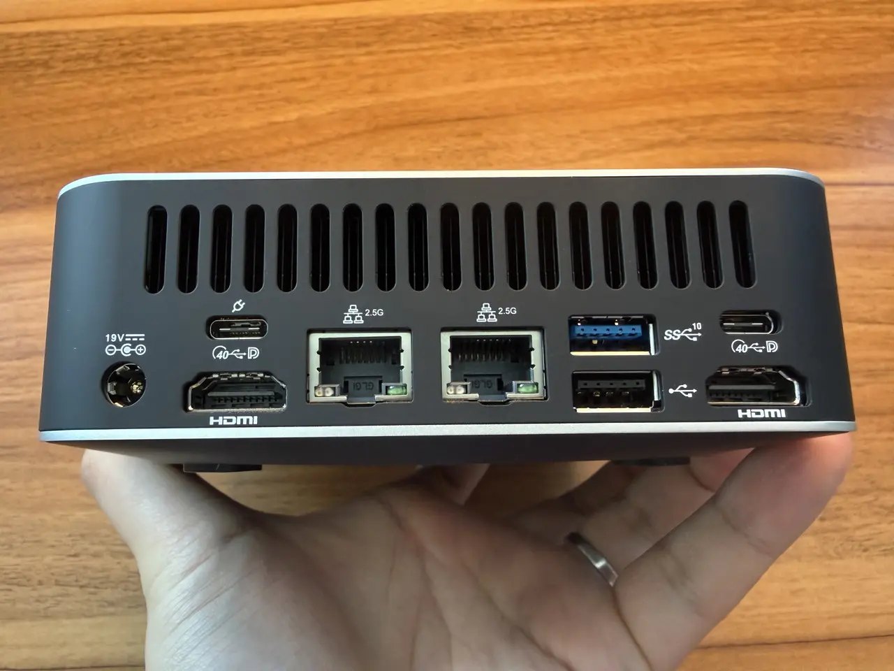 後部にはDC電源ポート、USB 4 Type-C(電力供給対応)、HDMI 2.0 ×2、2.5G RJ45 有線LANポート ×2、USB 3.2 Type-A Gen2、USB 2.0 Type-A、USB 4 Type-Cが用意。