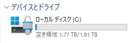 ▼2TBモデルのストレージでは、デフォルトの状態で1.81TB分が使用可能領域となっていた。