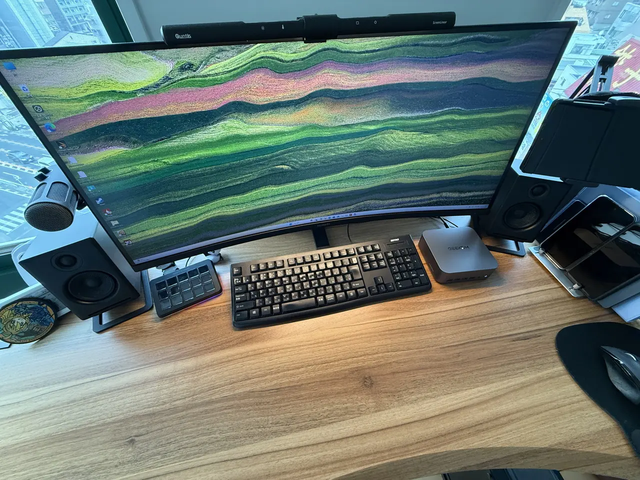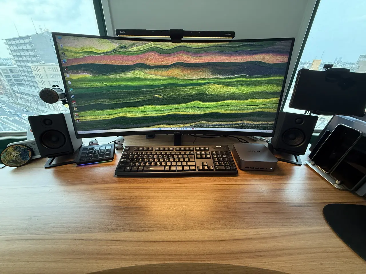 今回のレビュー時には3440×1440解像度のウルトラワイドモニターに接続して利用した。