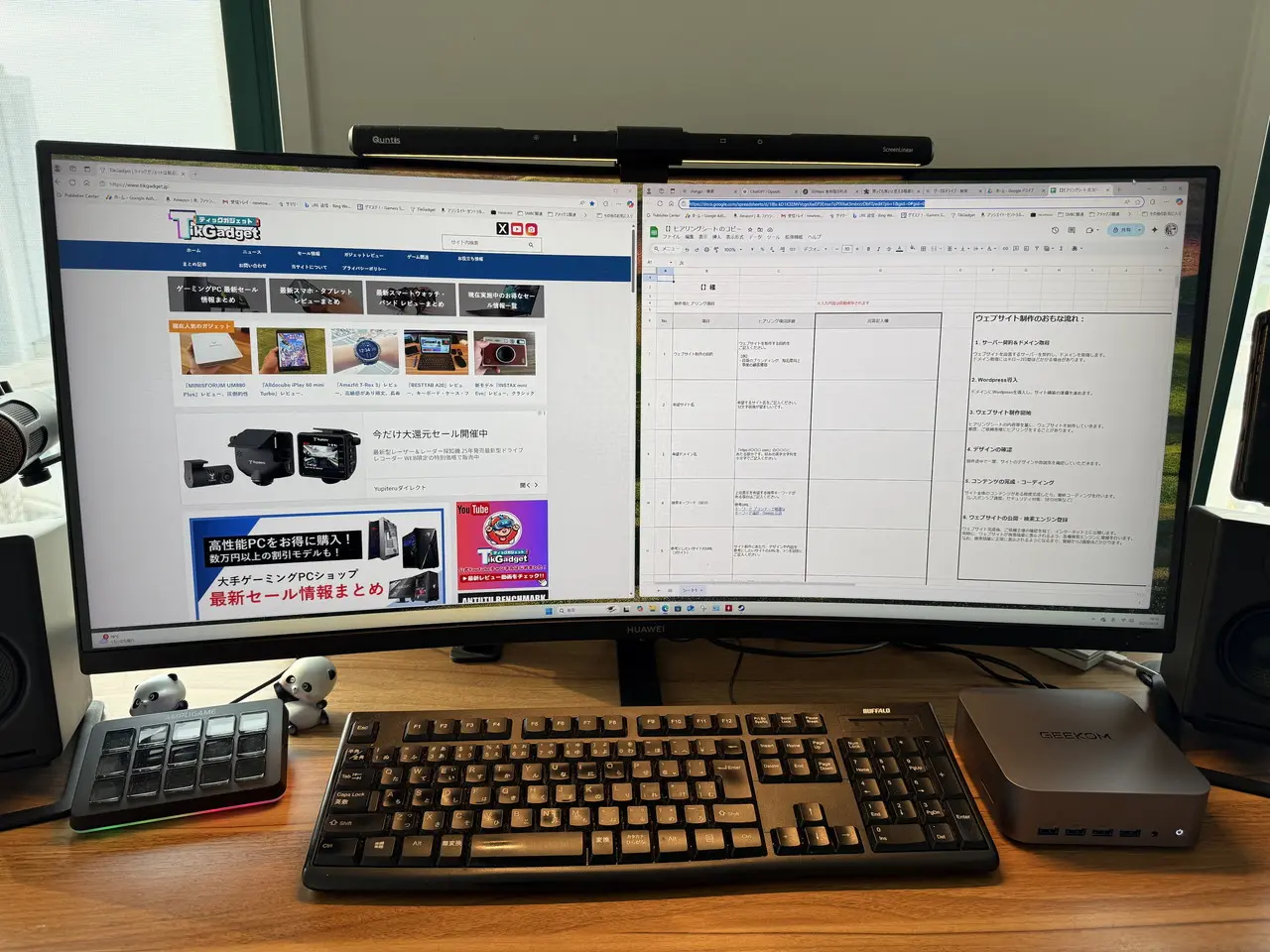 ウルトラワイドモニターでスムーズなウェブブラウジングが可能。ページ読み込みからスクロールまでいたって快適だ。