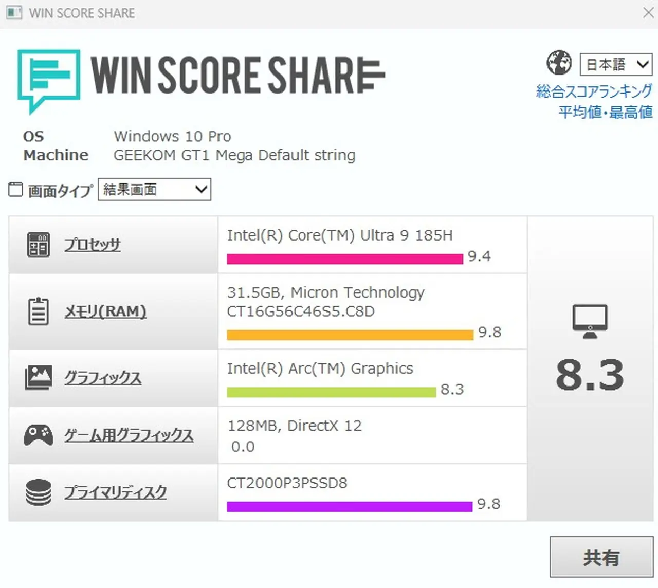『GEEKOM GT1 MEGA』のゲームパフォーマンス予測