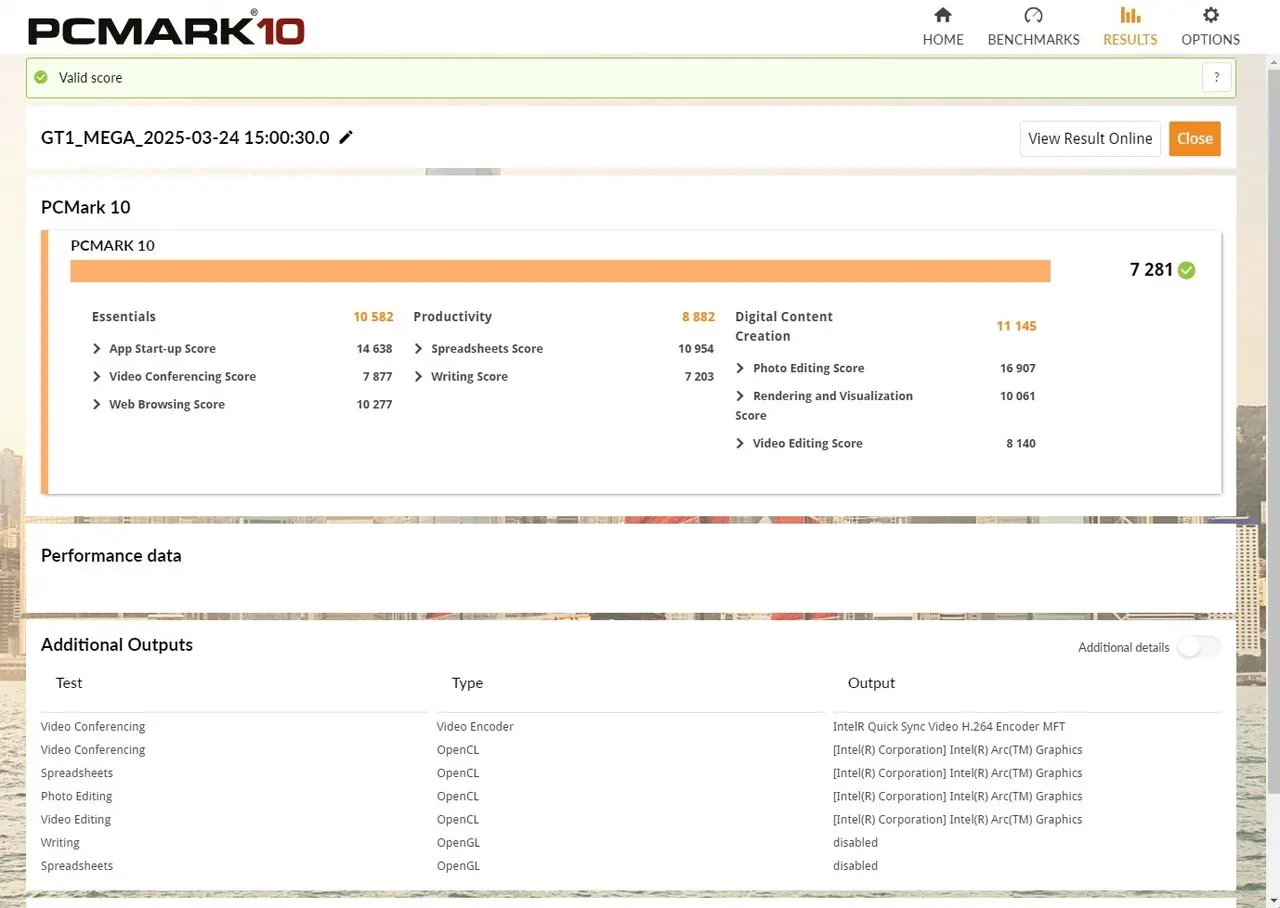 PCMARK10(無料版)のテスト結果は以下の通りとなった。