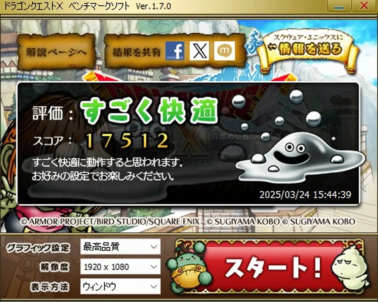フルHD解像度における最高品質設定で実行したが、スコアは17,512点で "とても快適" という結果が得られた。