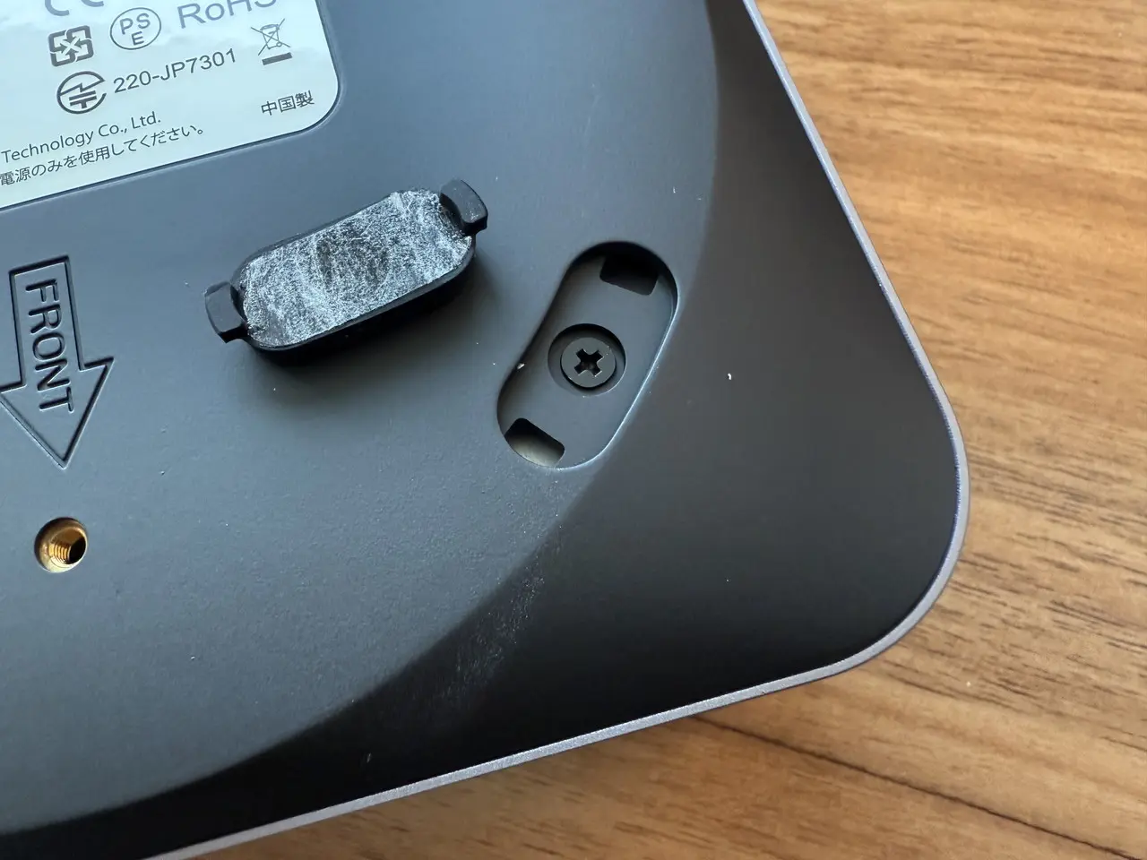 筐体デザインはスタイリッシュで高級感もある。コンパクト&軽量なサイズのため、狭いデスク上に設置しても場所を取らず、邪魔に感じることは無かった。壁掛けブラケット&ネジが付属しており、購入後すぐにモニター裏への取り付けが可能な点も嬉しい。