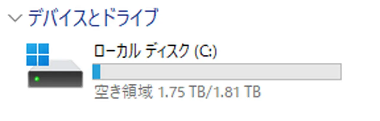 ▼2TBストレージ版では、デフォルトの状態で1.81TB分が使用可能領域となっていた。