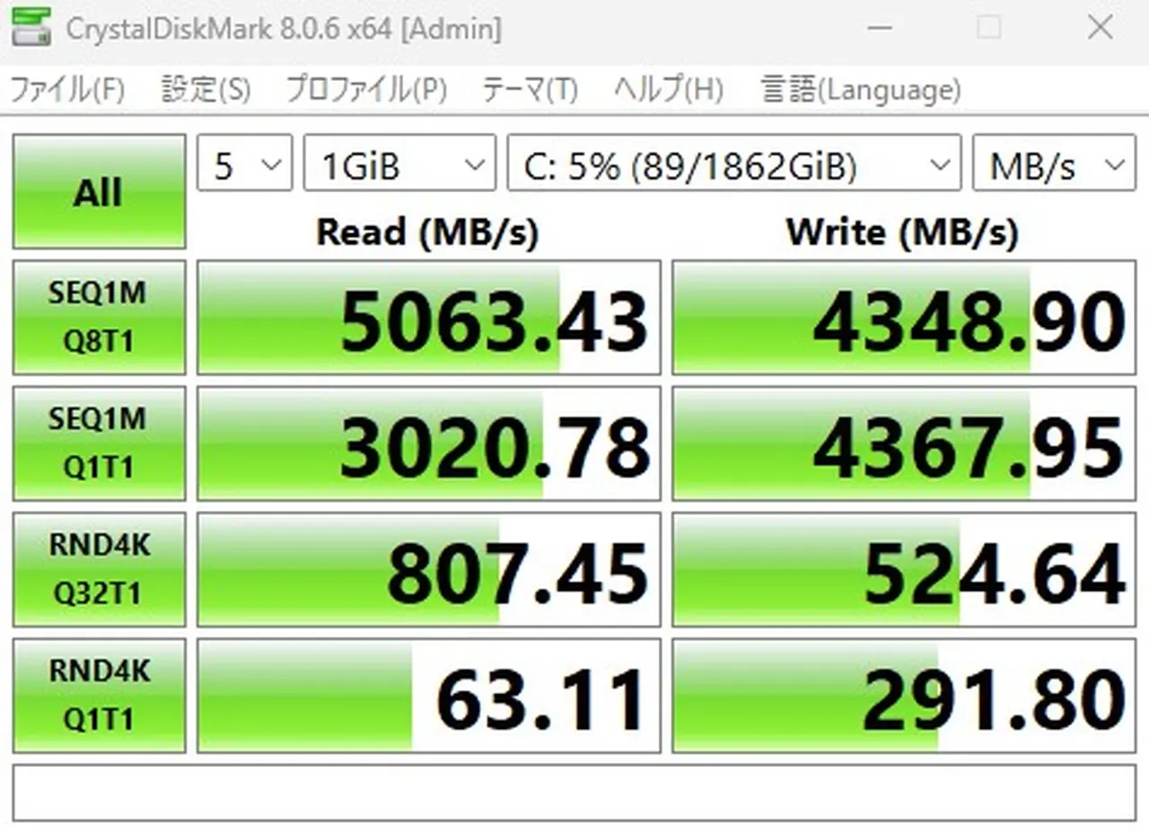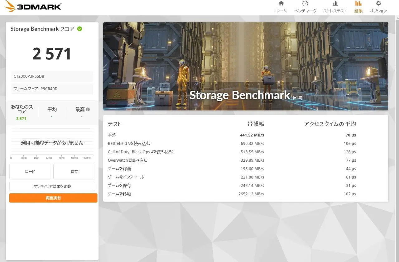上記の条件でベンチマークテストを行った結果、スコア5,499点、評価は "普通" であった。