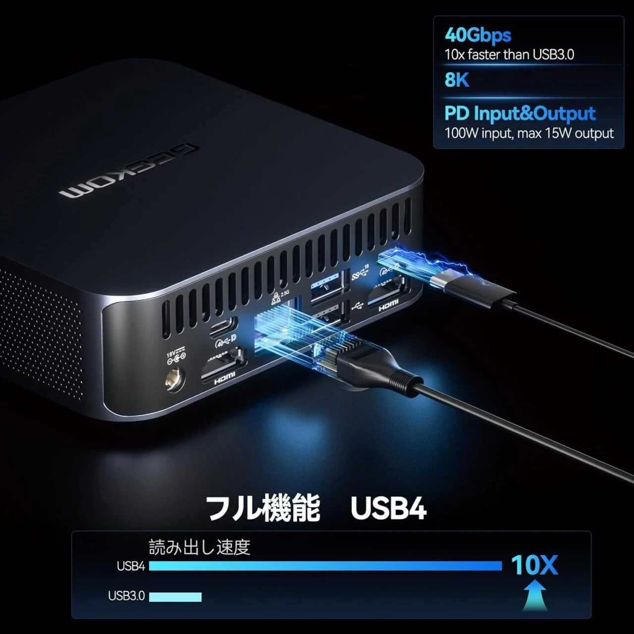 そして117mm x 112mm x 49mmのコンパクトかつ軽量な筐体には充実のインターフェースが用意。USB 4 Gen 3 Type-Cポートが搭載されており、高速データ伝送に対応しています。