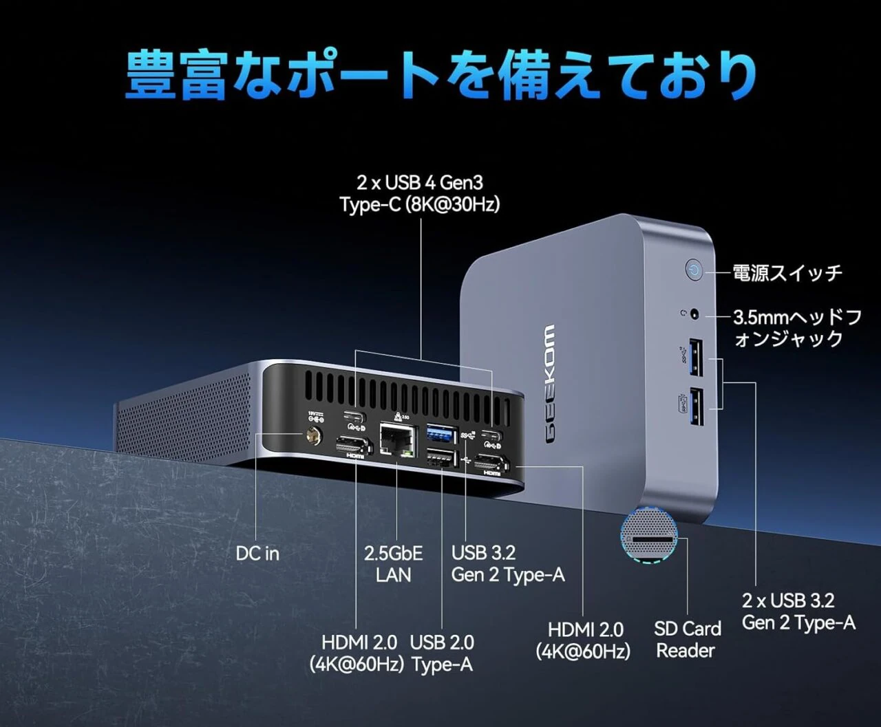 『GEEKOM GT12 Pro』は、Windows 11 Pro(64bit)を搭載したミニデスクトップPCです。