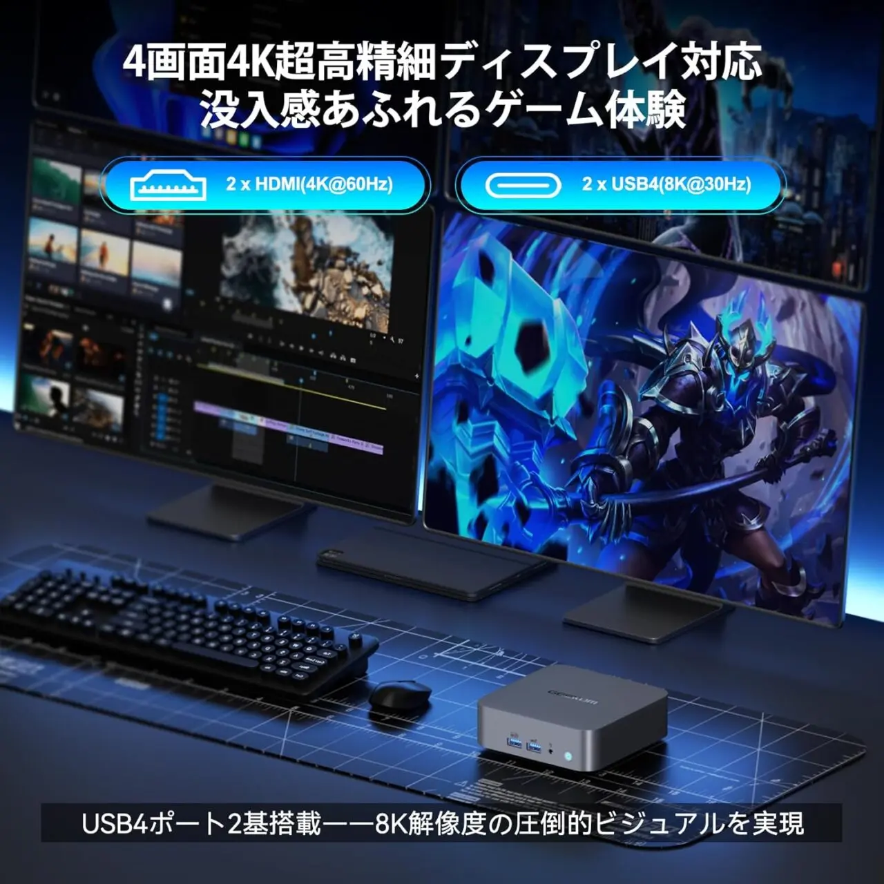 そして、2つのHDMIポートと、2つのUSB4ポートを使用することで、最大4画面への同時映像出力が可能となっています。