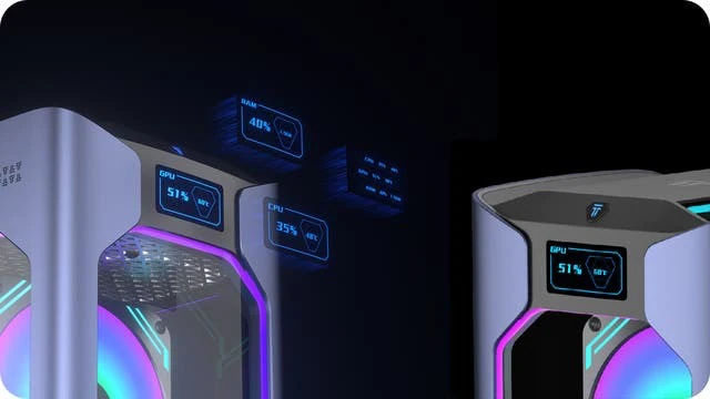 筐体上部にはGEEKOM独自の性能モニタースクリーンが搭載されており、PCの状態をリアルタイムで表示します。