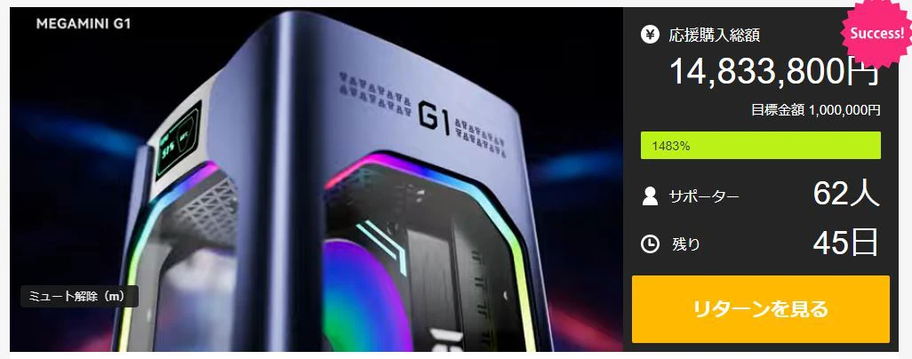 GEEKOM MEGAMINI G1は2024年9月30日(月)より、Makuakeにてクラウドファンディングが開始されており、2024年11月15日(金)まで実施される予定です。