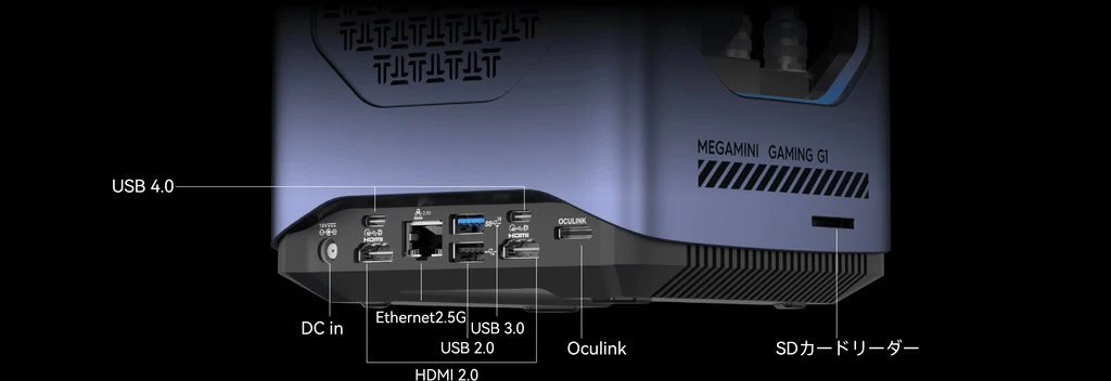 | 背面I/Oポート | RJ45(2.5G)×1 USB 3.0 ×1 USB 2.0 ×1 Thunderboltポート ×1 フル機能Type-C(データ+映像)×1 oculinkk-63GB/s ×1 HDMI 2.0 ×2 DC-in ×1 |