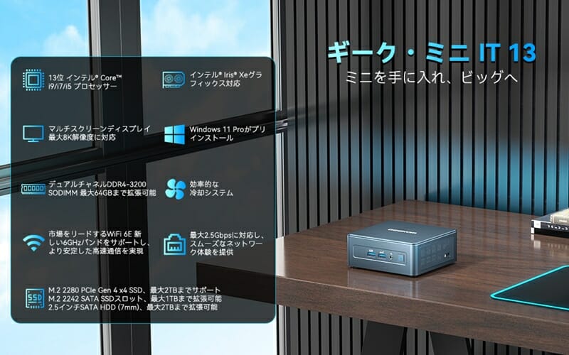 - 商品リンク:https://geekom.jp/products/nuc-mini-pc-it13-intel-i9-i7-i5