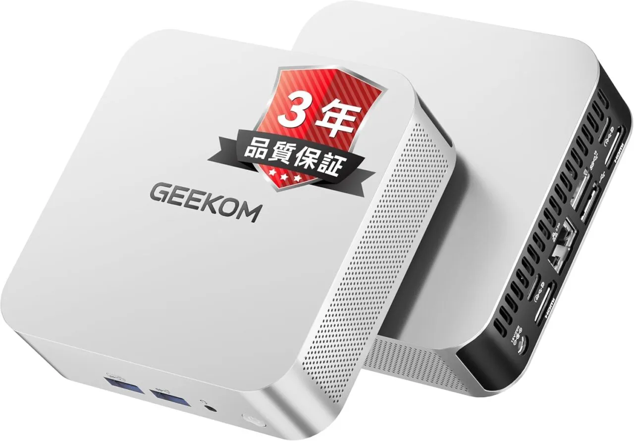 また、4画面同時出力、SDカードスロット、豊富なUSBポートなど実用性も高く、GEEKOM独自の静音冷却設計により高負荷時でも快適な動作音を実現。総じて完成度の高いミニPCに仕上がっています。