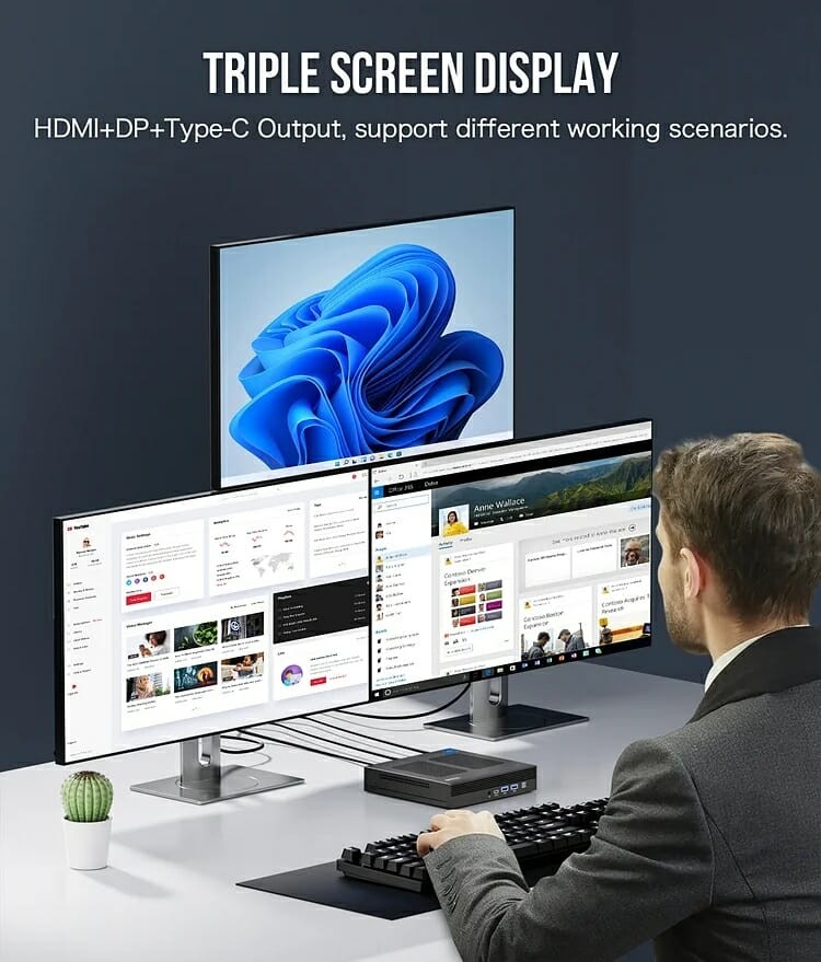 ▼Type-Cポート、ディスプレイポート(DP)、HDMIポートを併用した3画面同時出力も可能。