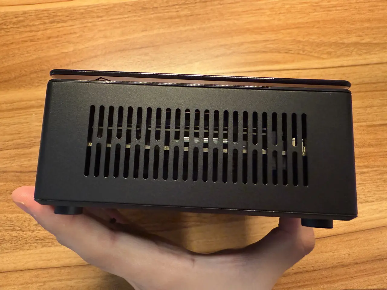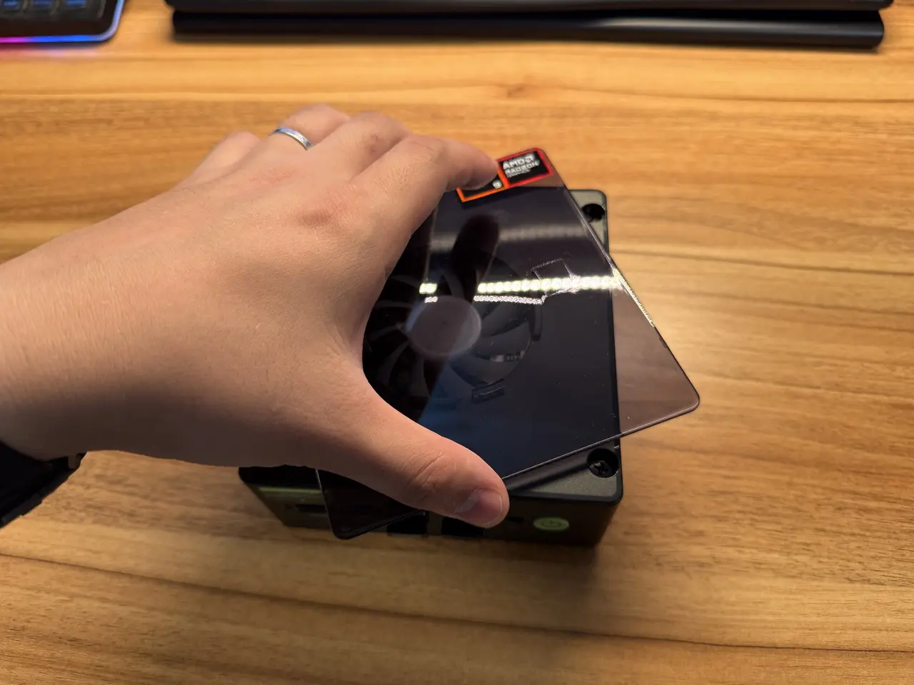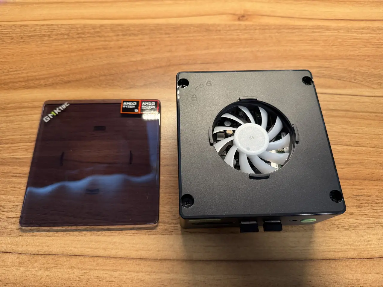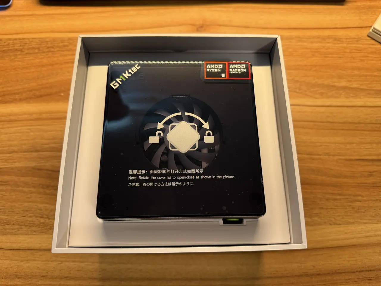 GMKtec K11の天板の端を左向きに回すことで、天板を簡単に取り外すことができます。