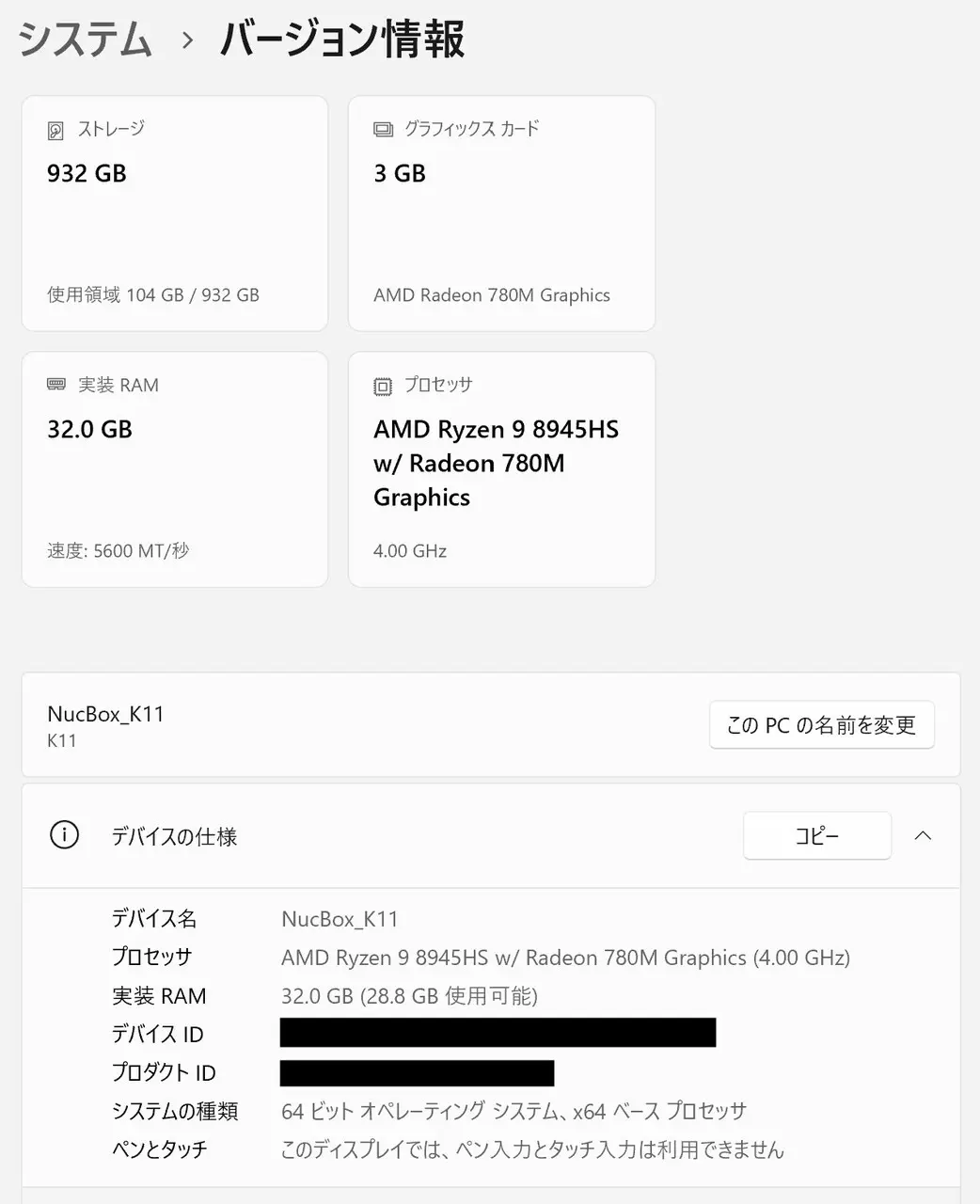『GMKtec K11』は、Ryzen 9 8945HSとRadeon 780Mを搭載したことで、ミニPCの枠を超えた処理性能を実現したモデルとなっています。