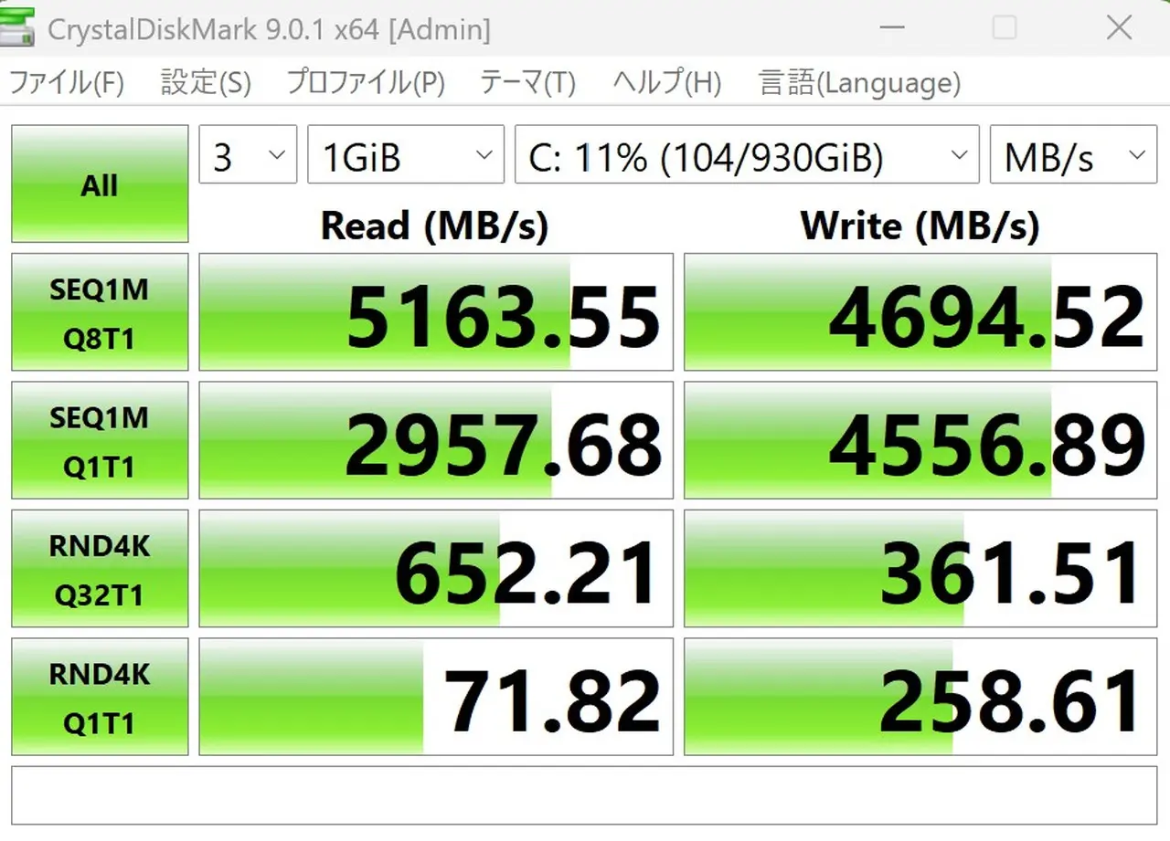 • ストレージの実効速度が速く、起動・ロード・データ移動が快適