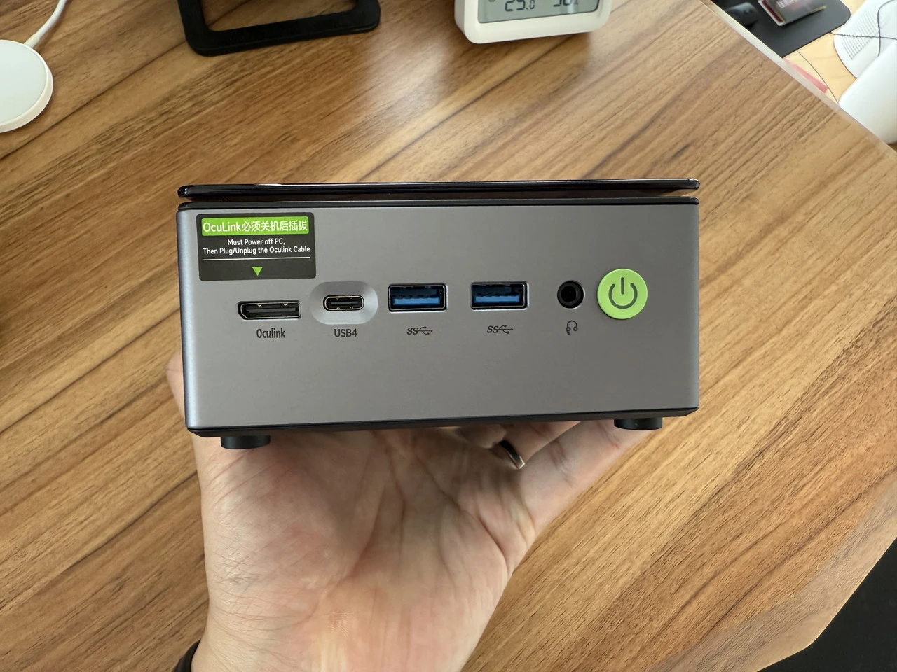 | インターフェース | 【正面】 ・Oculink PCIE4.0x4 ・USB Type-C 4.0(PD/DP/DATA) ・USB Type-A 3.2(Gen2)×2 ・3.5mmジャック ・電源ボタン 【背面】 ・USB Type-A 2.0×2 ・HDMI 2.1(8K@60Hz) ・DisplayPort 2.0(8K@60Hz) ・RJ45 2,5G LANポート ・USB Type-C 4.0(PD/DP/DATA) ・DC電源ポート ・ケンジントンロック穴 |
