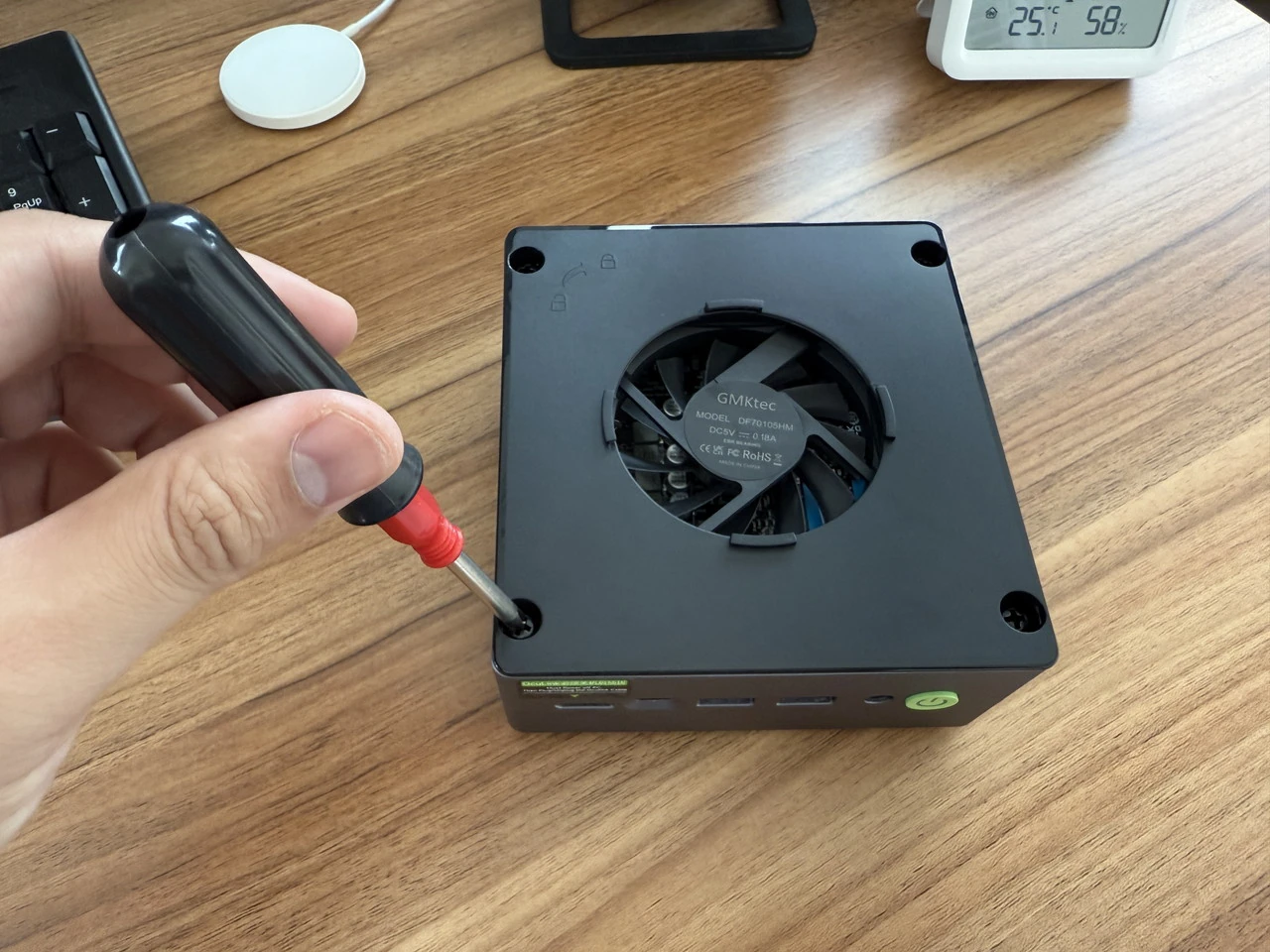 まず、PC上部の天板を反時計回りに回して、天板を取り外す。
