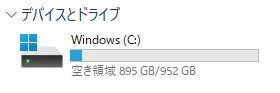 ▼1TBモデルのストレージでは、デフォルトの状態で952GB分が使用可能領域となっていた。